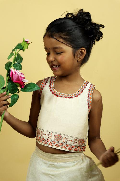 Diorama Designs "Princess in Bloom" Handpainted Kids Crop Top & Lehenga Set