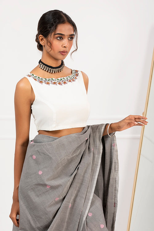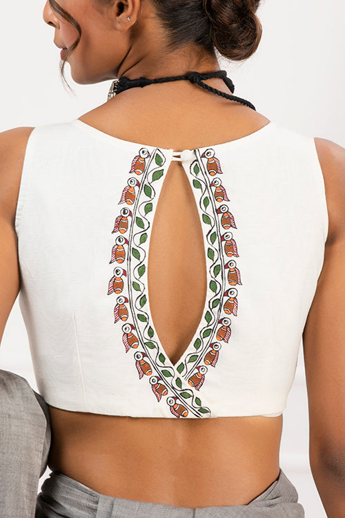 "Gulmohar Goonj" Handpainted Blouse